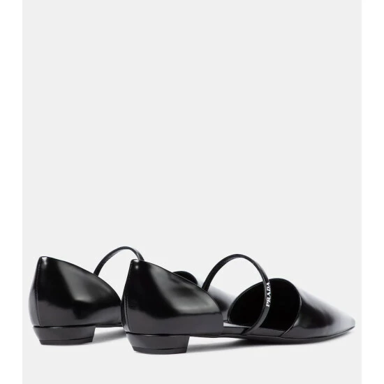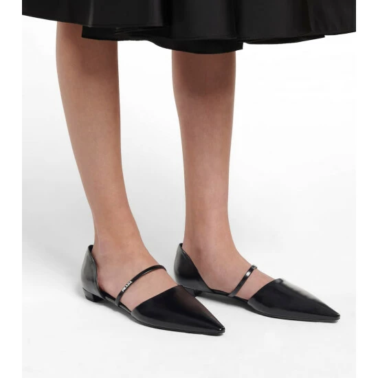 Prada’s ballet flats are a typically on-point shoe from the Italian house. Featuring elongated point toes and slender bands across the vamps, they’re made from polished leather and rest atop minimal block heels. If the black colorway and high-shine finish weren’t enough, logo lettering at the straps is a subtle concession to branding.