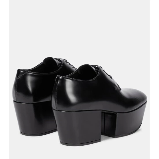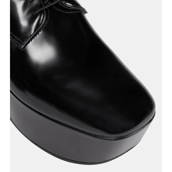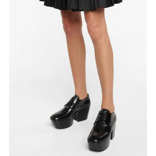 Add a bit of height and a “Prada” logo to a menswear staple, and you get these Derby shoes, which were seen on the runway. They’re made from delightfully smooth black leather with two blocks of slanted platforms.