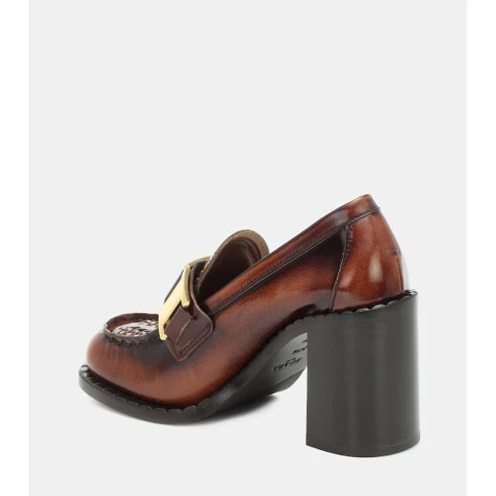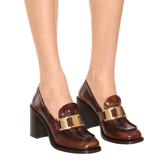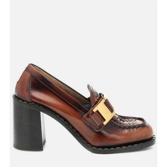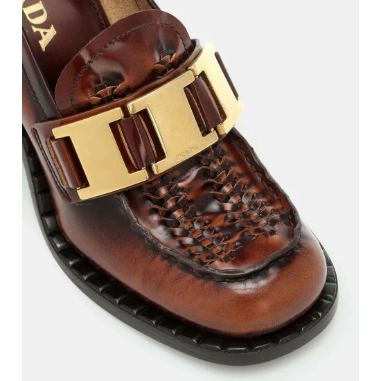 Prada borrows from menswear design codes to craft these brown loafer pumps. Made in Italy from shiny calf leather, they’re defined by braided details and burnished golden hardware, then set atop stacked block heels for a sense of drama. Wear yours to elevate retro-cool tailoring.