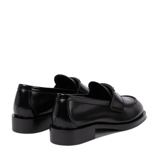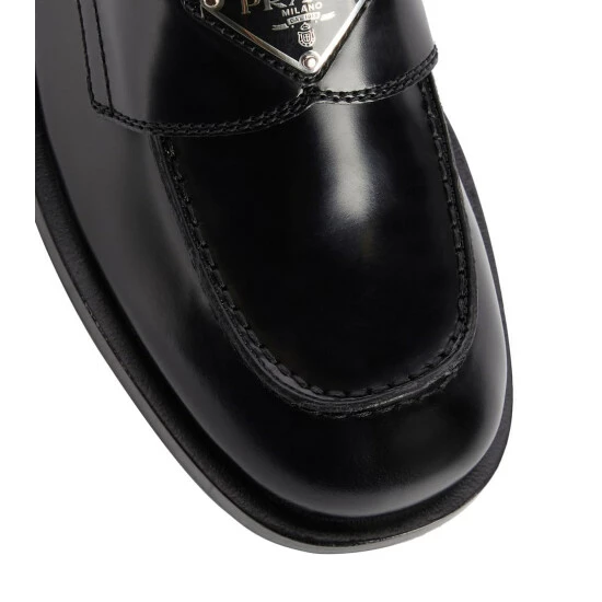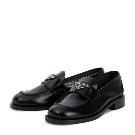 A pair of Prada loafers – adorned with triangular logo plaques – is the footwear must-have of the season. This style is made from brushed calfskin leather for a high-shine finish.