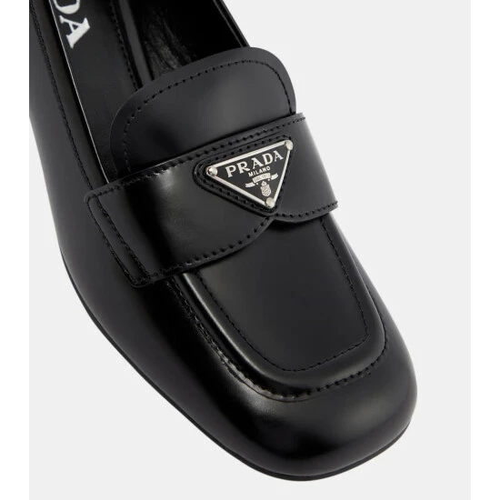 Emblazoned with the label’s iconic triangular logo, these loafers from Prada are made from leather and are set on block heels.