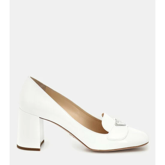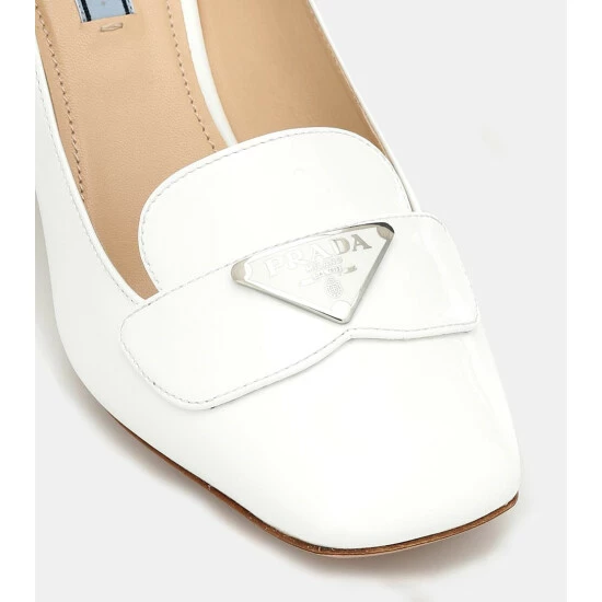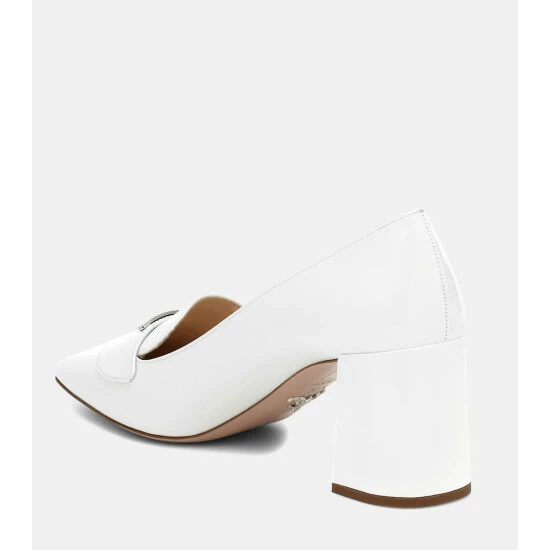 Exude retro-meets-modern appeal in these white leather pumps from Prada. The Italian-crafted pair is shaped with square toes and sturdy block heels. Lend any look instant recognition by letting the house’s iconic logo plaque peak through.