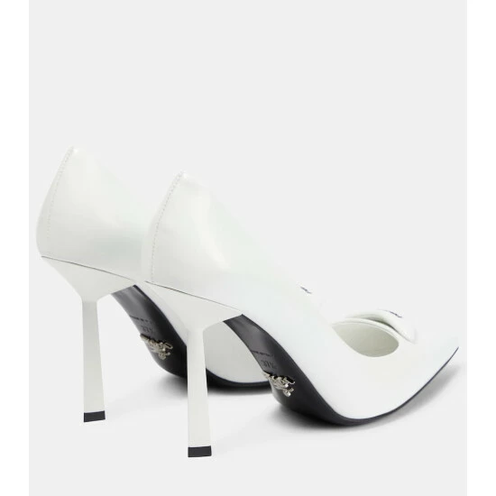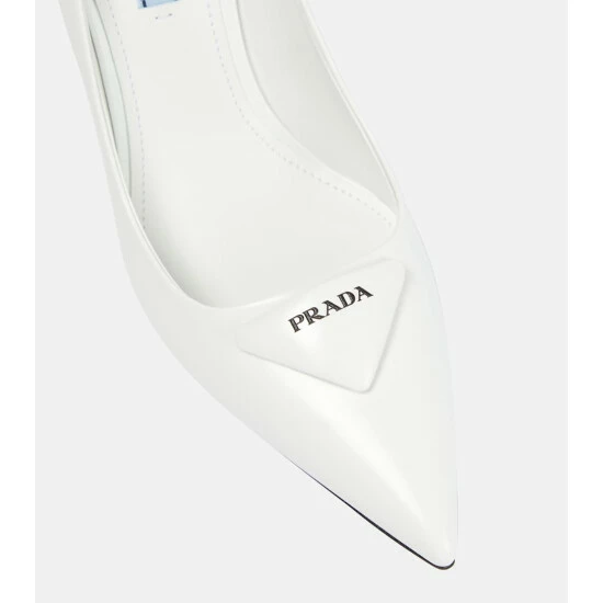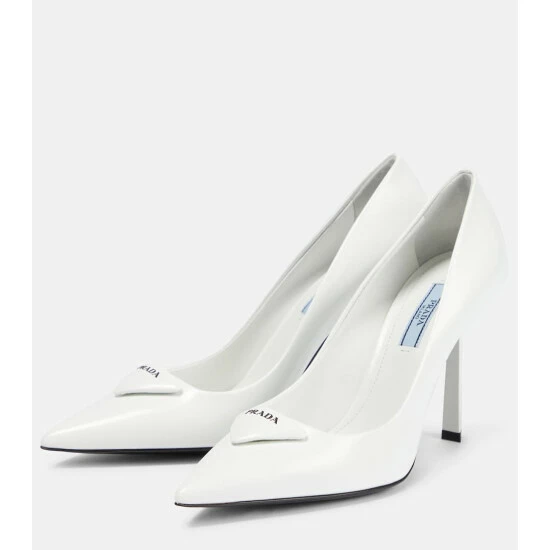 These pumps from Prada feature a sharp pointed-toe silhouette and stiletto heels. They’re made from leather with a triangular logo patch.