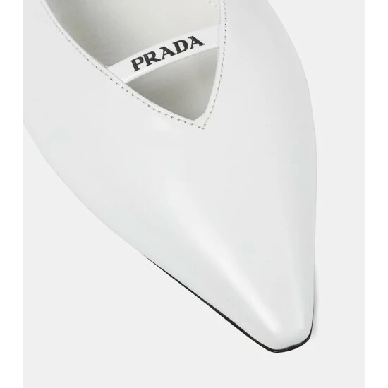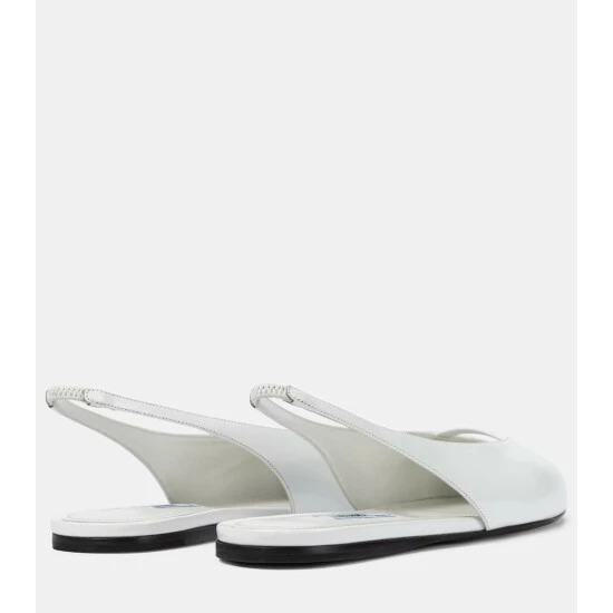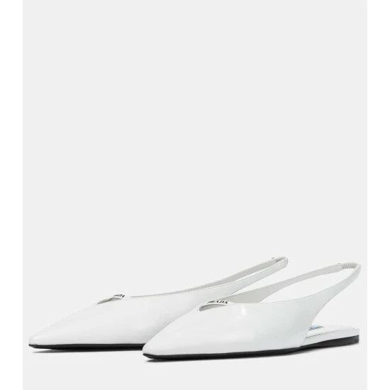 Pointed to perfection, these white ballet flats from Prada will certainly pique your interest. Borrowing from the ’60s, they’re a calf-leather design with elongated toes, slingback straps, and contrasting logo lettering on their front cutouts.