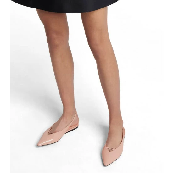 Slingback straps are so synonymous with Prada, it makes sense that the Italian powerhouse would avail of them on these ballet flats. In a point-toe profile with deep-cut vamps, this pair is made from pale pink leather that’s brushed to a high shine.