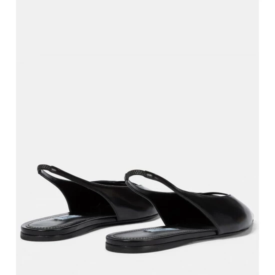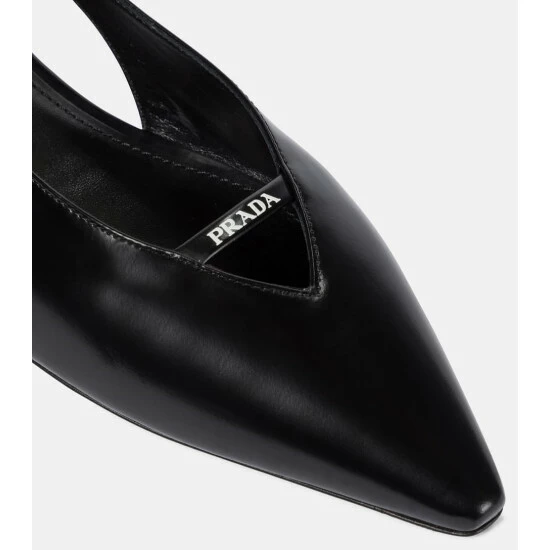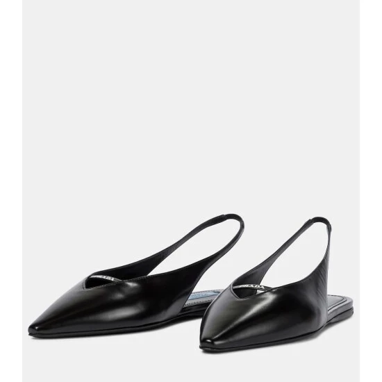 Pointed to perfection, these black ballet flats from Prada will certainly pique your interest. Borrowing from the ’60s, they’re a calf-leather design with elongated toes, slingback straps, and contrasting logo lettering on their front cutouts.