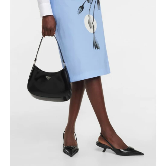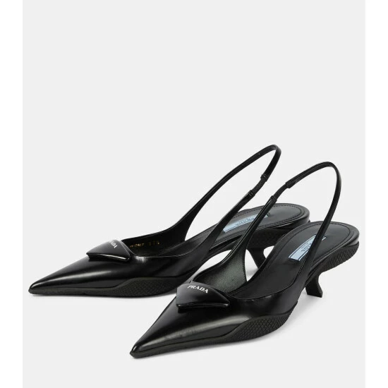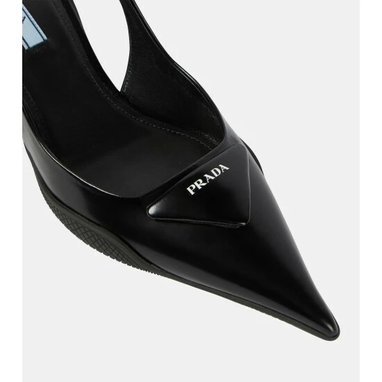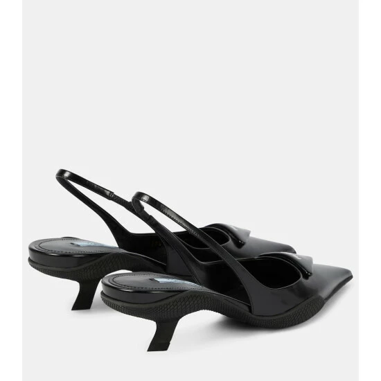 Prada revisits an iconic ’90s silhouette with these sports-inspired slingback pumps. Made in Italy from brushed leather, they’re set on comma heels and feature visible rubber soles.