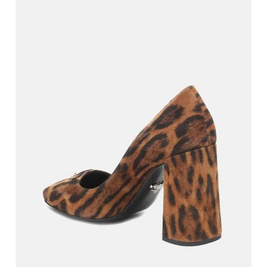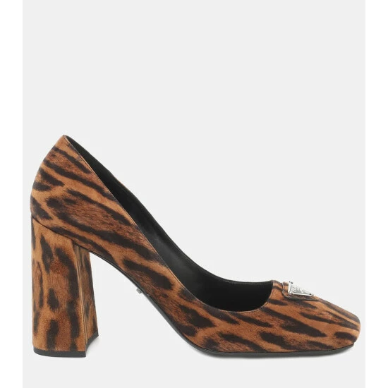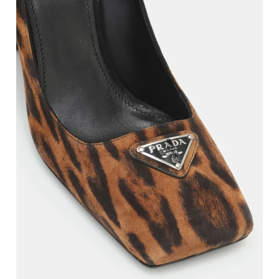 Balanced on towering block heels, these leopard-print pumps from Prada prove that sartorial spots are the new neutral. Made in Italy from suede, this pair features the house’s iconic triangular logo plaques on its squared toes. Style yours with all-black ensembles and one of the label’s nylon bags.