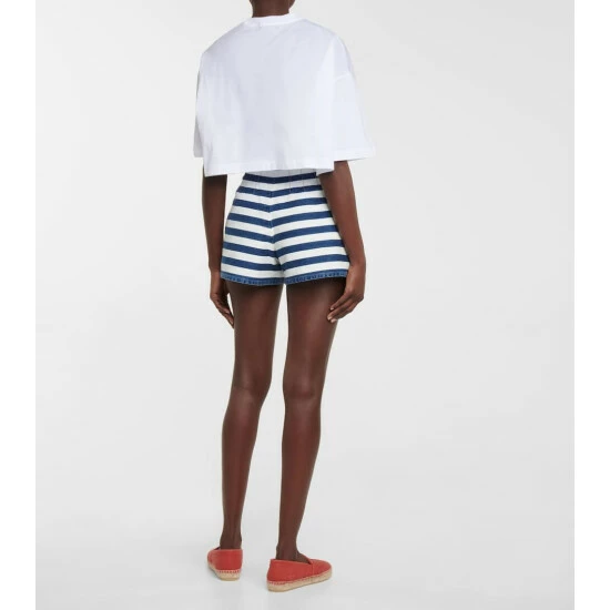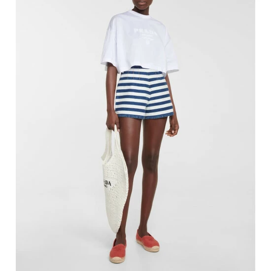Woven from pure cotton jersey in a cropped silhouette, this sporty T-shirt from Prada is elevated with the house’s logo across the chest in tactile tonal toweling fabric.