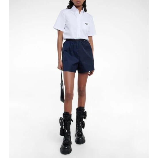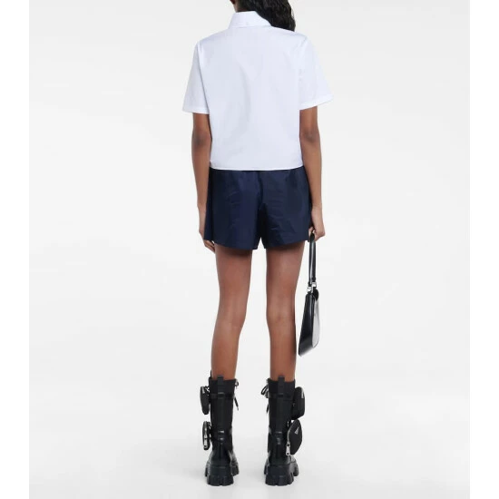 Made from soft cotton jersey, this shirt is a menswear-inspired design with a feminine touch. This piece features Prada’s iconic triangular logo plaque, which embodies simplicity, elegance, and quality.