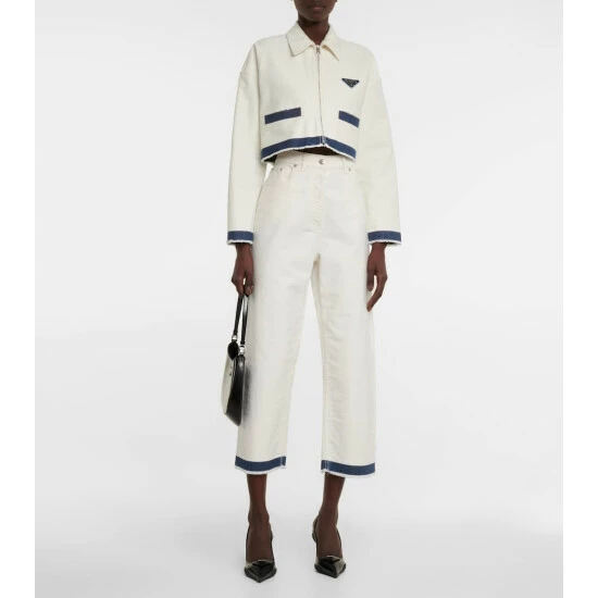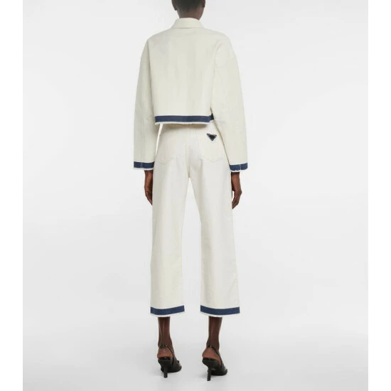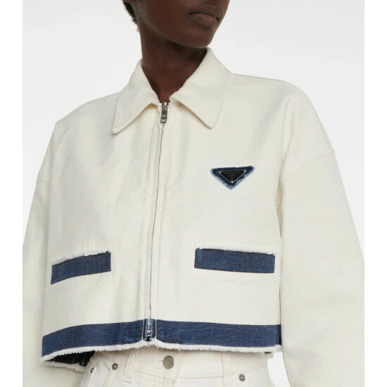 Prada riffs on the denim jacket with this two-toned design. Cut from pure cotton to a cropped silhouette, this piece features contrast-colored trims that are gently frayed.