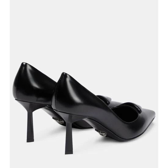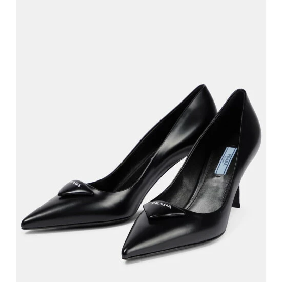 Slide into these leather pumps from Prada for timeless sophistication. Made in smooth leather, the style has a pointed toe and a slightly padded leather detail complete with the iconic triangle logo.