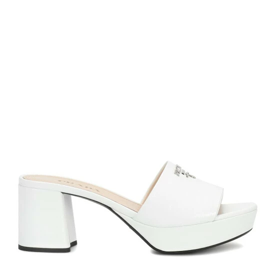 Add a retro-cool silhouette to your footwear edit with Prada’s optic white sandals. This backless silhouette has been crafted in Italy from sleek calf leather and comes set on a bold block heel. Silver-tone branded hardware adorns the upper for a dose of ’90s-inspired chic. We are wearing ours with all-white looks to celebrate days in the sun.