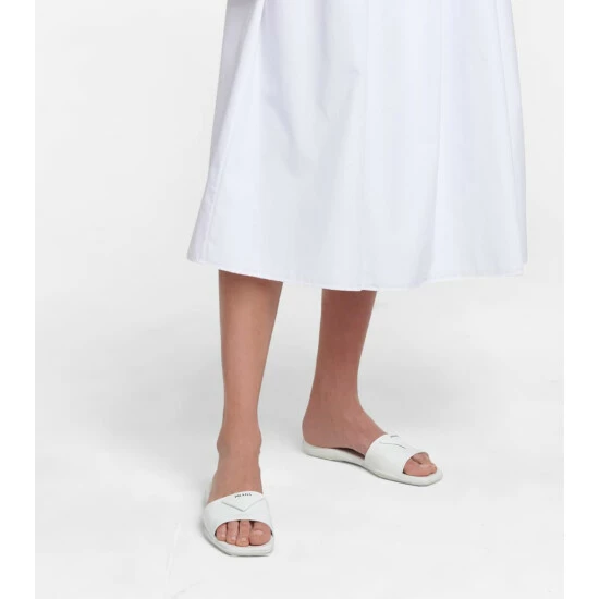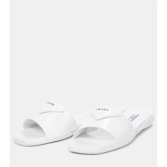 Complete summer looks on a future-facing note with these white sandals from Prada. Made in Italy from calf leather that’s been brushed to a high shine, they have square open toes with wide straps that feature the house’s padded triangle logo.