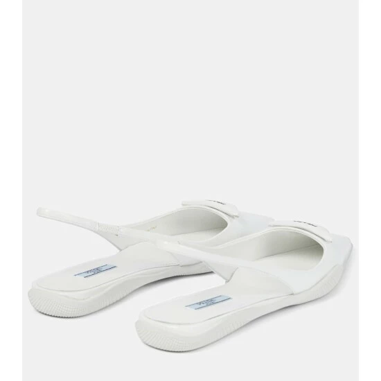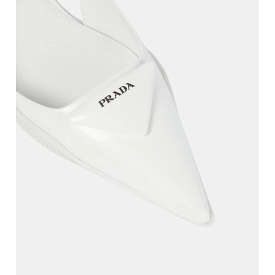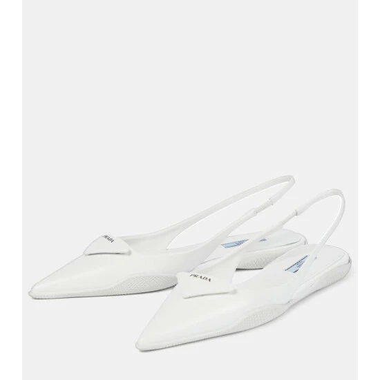 Pointed to perfection, these flats from Prada will pique interest. Borrowing from the ’60s, they’re made from white leather with slender slingback straps and screen-printed logo insignia.