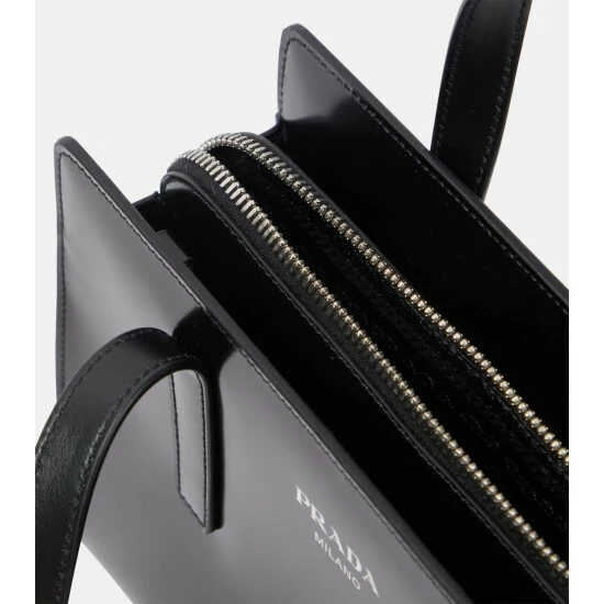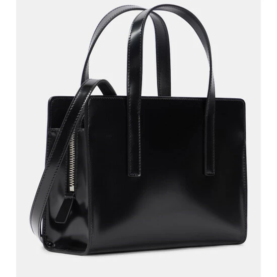 This Prada tote will be a favorite staple in your wardrobe for many seasons to come: it’s cut from glossy black patent leather to a boxy shape and finished with logo detailing on the front.