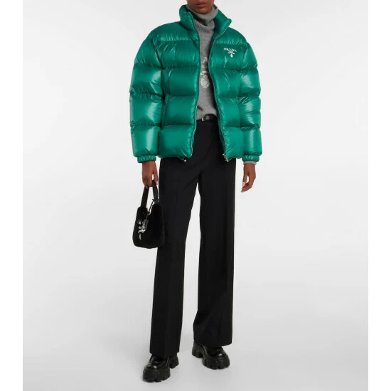 Complete your look on a high-style note with this puffer jacket from Prada. The high-neck design is down-filled and features the brand’s iconic logo on the chest.