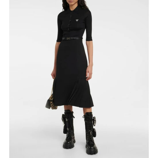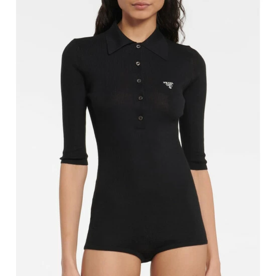 Prada has your essentials covered with this classic short-sleeve bodysuit. This fitted, collared design is made from a luxurious blend of cashmere and silk and features the iconic Triangolo embellishment.