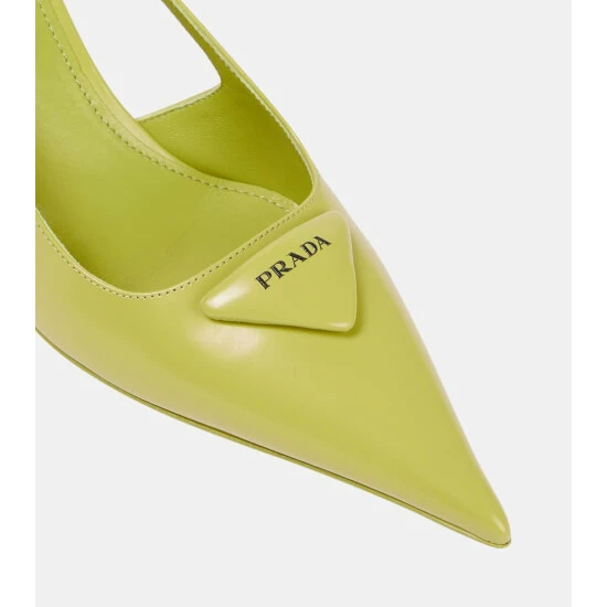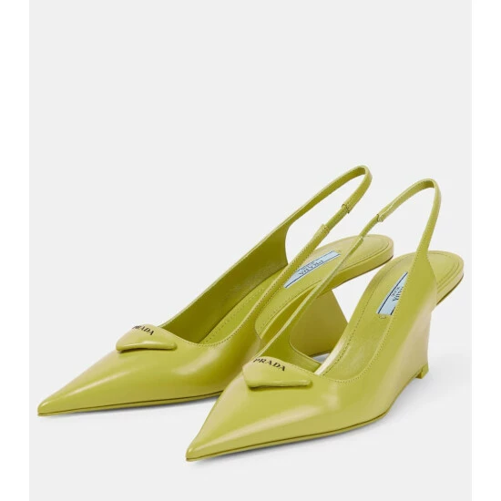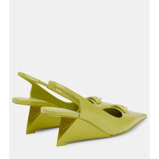 These slingback pumps from Prada are set on futuristic wedges that are shaped like triangles – a label-signature motif. They’re made from polished leather with piercing pointed toes and tonal logo plaques.