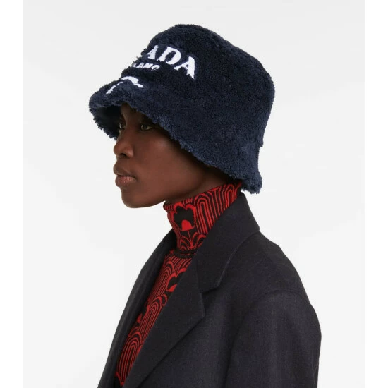 We love this black terry bucket hat because it feels like an archival piece from early aughties Prada. Partially lined with cotton for a soft, breathable feel, it features the house’s unmistakable logo in contrasting white.