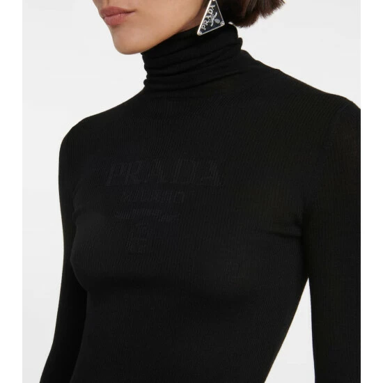 With this design, Prada gives the classic, black turtleneck sweater an elevated update. It’s made from a lightweight wool blend to a skintight silhouette with a large – yet subtle – tonal logo on the chest.