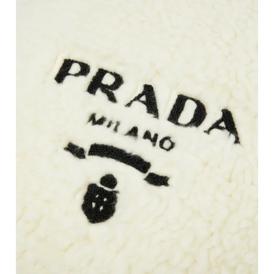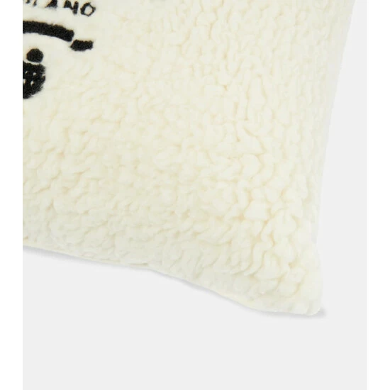 This square cushion from Prada is made from a soft, teddy-like blend of wook, silk, and cashmere. It’s detailed with contrast-colored branding at the front.