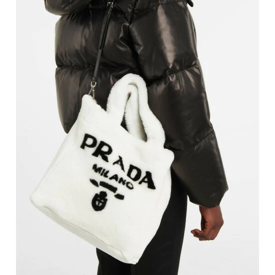 Prada reboots your accessories for the cooler months with this medium-sized white shearling tote. Defined by logo detailing, it comes with a removable triangular logo pouch and can be carried by a slim detachable leather shoulder strap. Swing yours alongside the label’s sweaters.