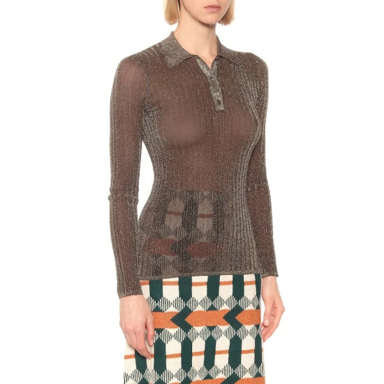 Prada promotes the not-so-basic basic with its metallic-flecked long-sleeved take on the polo shirt. This sleek ribbed-knit style arrives in a semi-sheer, shimmering gray design, making it the perfect piece to layer with. Wear yours with a pleated midi skirt and loafers.