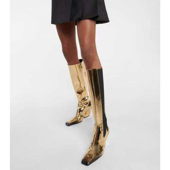 These knee-high Prada boots are a masterclass in statement-making glamour. Shaped with slanted block heels and squared toes, they’re made from reflective mirrored leather.