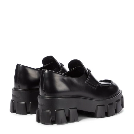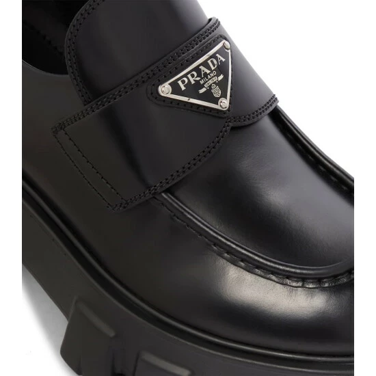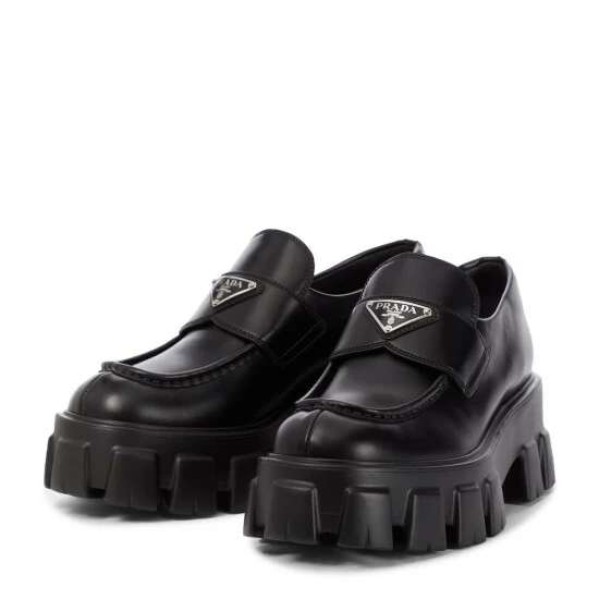 Prada’s lug-soled Monolith loafers are made from the house’s signature brushed leather in classic black that will go with everything. They have squared-off toes with raised stitching, and enameled triangular logos set atop the penny bar straps. Best of all, they’re the subtle way to add height to your look – they come with 6cm platform heels.