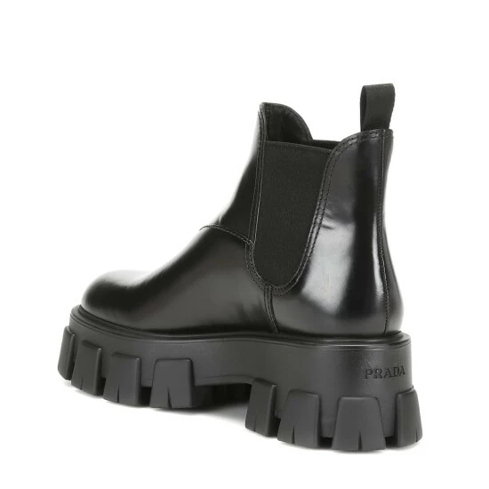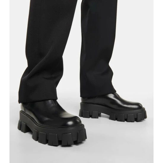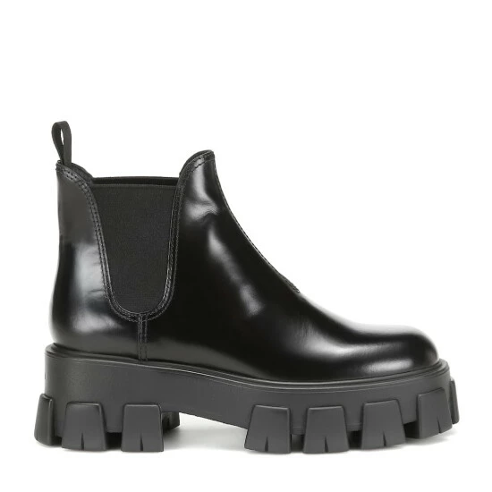 The Monolith ankle boots from Prada are an effortless option to quickly pull on and add a touch of statement style to everyday looks. Made in the brand’s native Italy from black leather, the pair works Chelsea-boot style gusseted sides and rear pull tabs, offset by extra-chunky rubber soles.