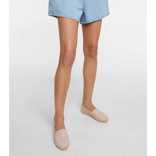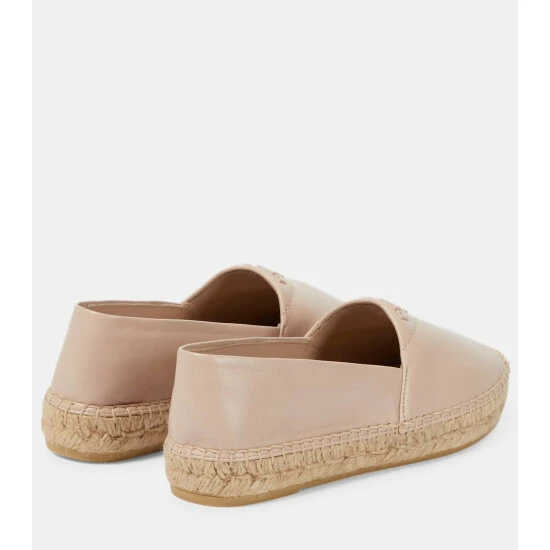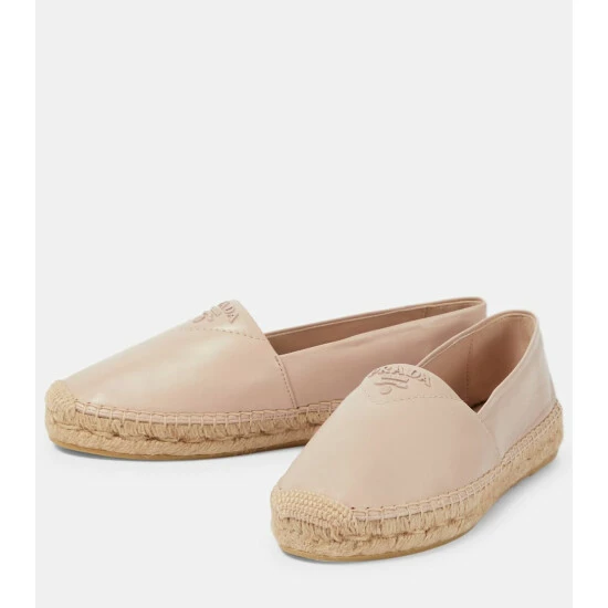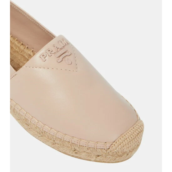 Espadrilles remain a style classic, and this Prada pair is a refined take. Made from grained, beige nappa leather with tonal logo detailing, they have braided jute soles.