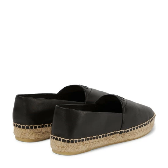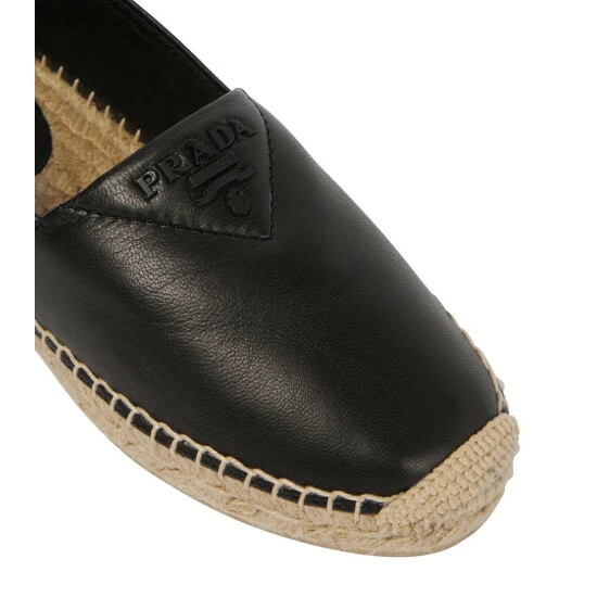 Espadrilles remain a style classic, and this Prada pair is a refined take. Made from grained, black nappa leather with tonal logo detailing, they have braided jute soles.