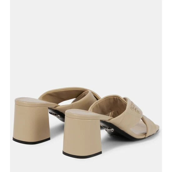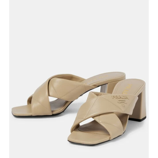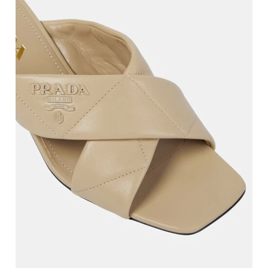 Step up your shoe game in both glamour and height with these block-heeled sandals from Prada. They’re made from diamond-quilted nappa leather with sophisticated, tonal logo plaques at the crossover straps.
