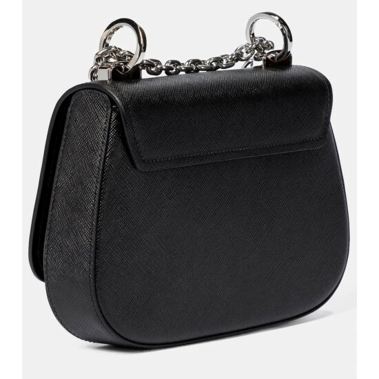 A modern interpretation of one of the house’s signature styles, the black New Sidonie shoulder bag is a timeless design you’ll treasure for many seasons to come. This saddle silhouette – first seen on the FW20 runway – is made in Italy from the house’s signature Saffiano leather and swings from an adjustable chain strap. The logo-jacquard lining plays host to three card slots for easy organization.