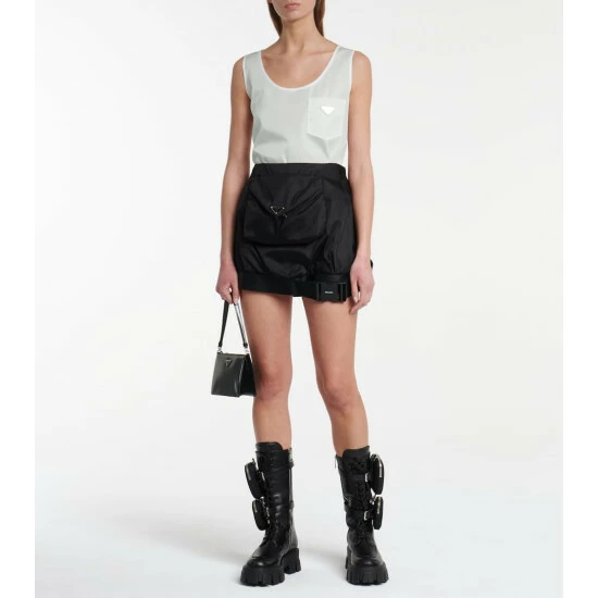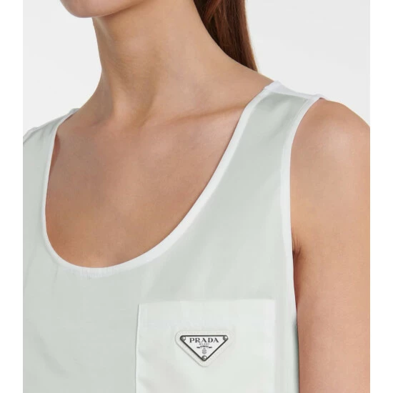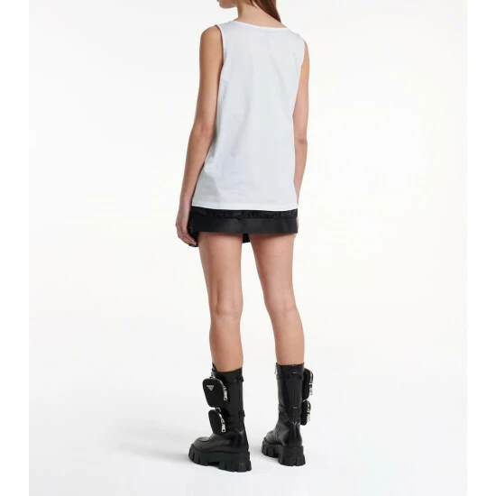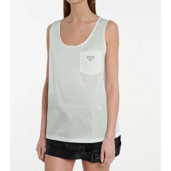 Prada’s design philosophy balances style with sustainability in pieces like this white tank top. Recycled fibres are used to make the cotton jersey design, which is framed with a low scoop neck and logo-adorned patch pocket.