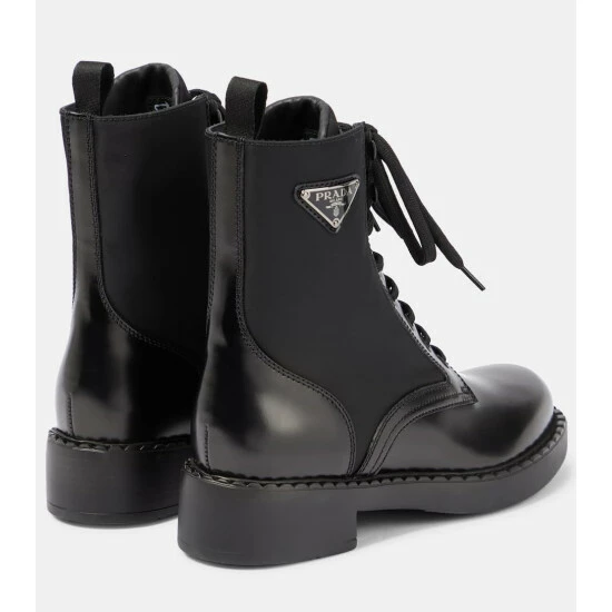 Prada lends a sophisticated edge to a classically tough-luxe silhouette with these combat boots. Made from smooth, black leather, they’re adorned with label-signature logo detailing at the nylon side panels and tongues.