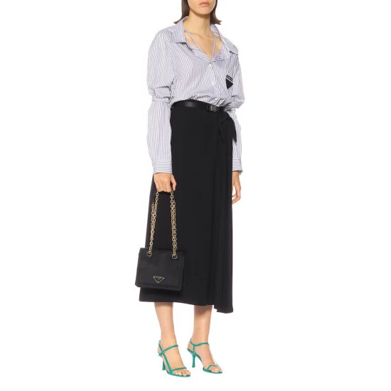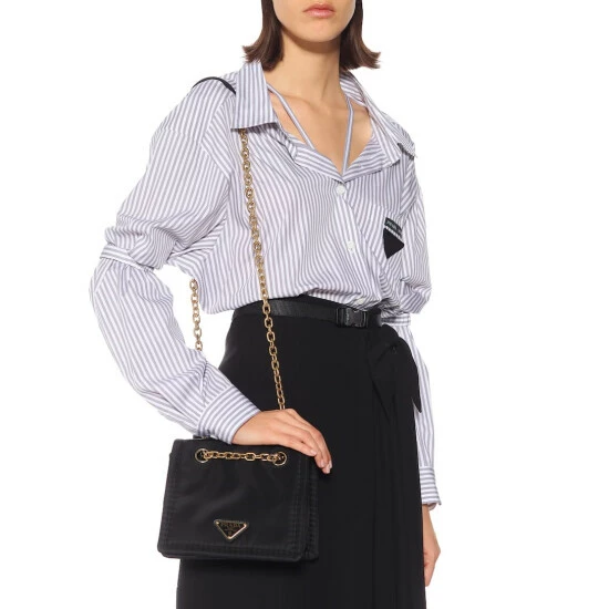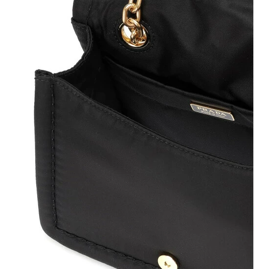 Quintessentially Prada, this softly structured shoulder bag has been crafted from black nylon with luxe golden details. The Italian-made design features a flap top that opens to reveal a spacious interior, including a zipped pocket. Let yours bring contemporary elegance to everyday looks.