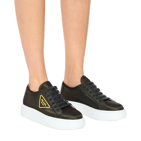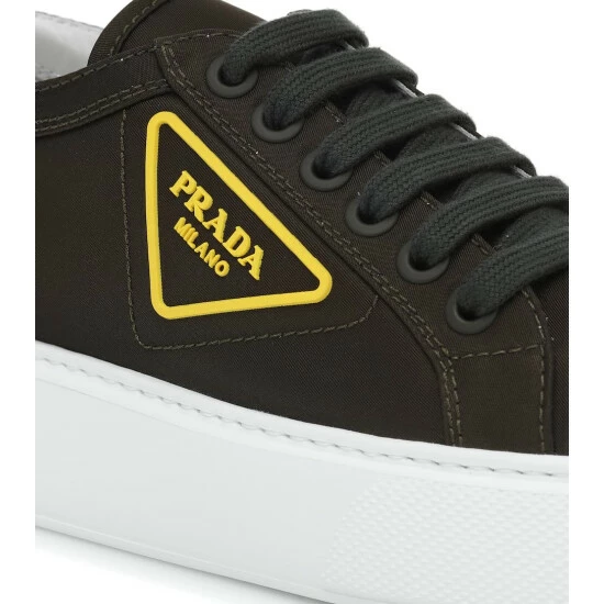 Tap Miuccia Prada’s elevated-sportswear slant with these dark green sneakers. Made in Italy from the house’s signature nylon gabardine, they’re cut to a traditional tennis-shoe silhouette with yellow logos accenting the outer sides. We love how the exaggerated rubber soles will add just the slightest bit of height.