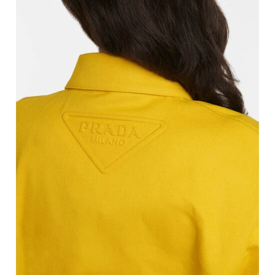 Invest in utilitarian tailoring with this cotton twill jacket from Prada. It’s cut for an oversized fit and has a pointed patch pocket on the chest in a nod to the label’s triangular logo.