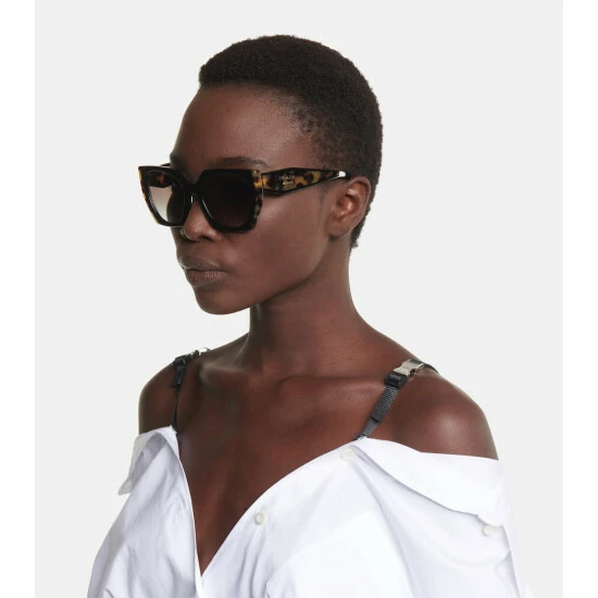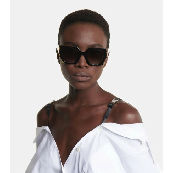 These dramatically oversized sunglasses from Prada are sure to be the focal point of any ensemble. Made from black acetate with striking tortoiseshell accents – revealed with every turn of the head – it’s finished with logo detailing at the geometric arms. Keep yours protected in its case, the color of which may vary.