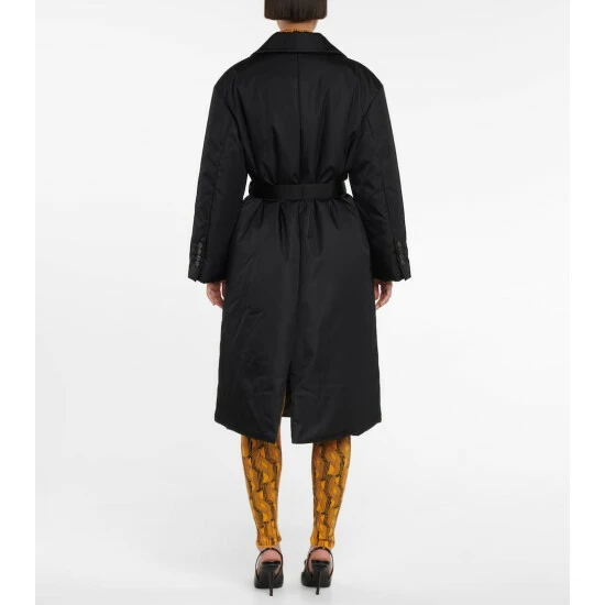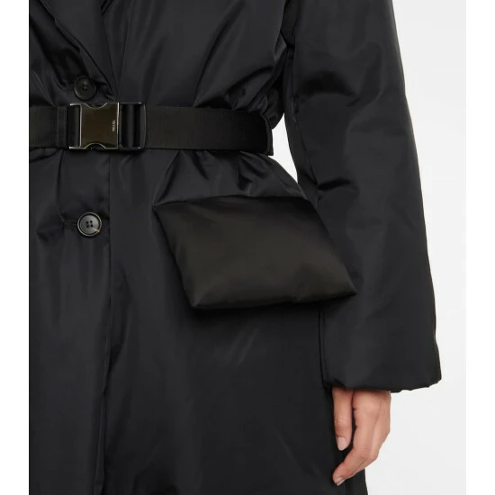 Fashion meets function in this black Prada coat, which is crafted from sustainable Re-Nylon and padded with a warm down feather-blend. It comes in an oversized fit featuring dropped shoulders and wide lapels, and is accented by an adjustable buckled waist belt, large pockets and the label’s signature triangle emblem at the chest.