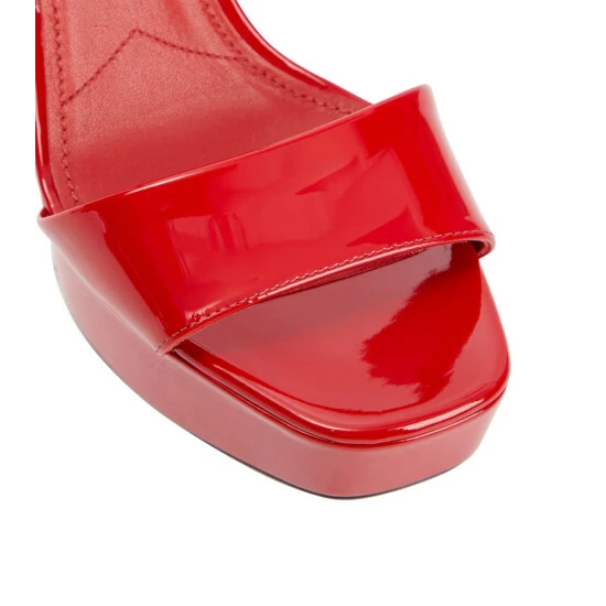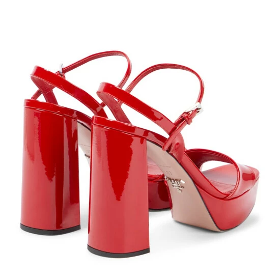 Achieve a retro look with these patent leather platform sandals from Prada. The ’70s-inspired design is made in Italy with a single band across the toes and a silver-toned buckle around the ankles which lends a contemporary mood.
