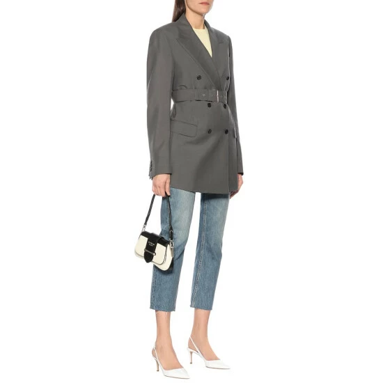 Crafted from glossy white patent leather, Prada’s slingback pumps are an easy way to add a sophisticated twist to everyday edits. The sleek, pointed-toe silhouette has been crafted in Italy and is set on a low heel for effortless day-to-night wear.