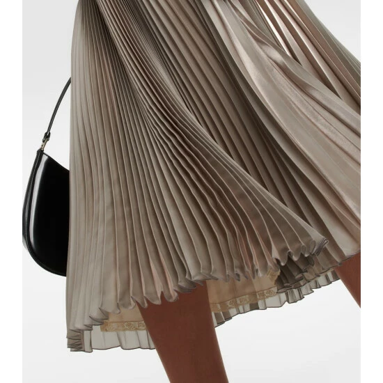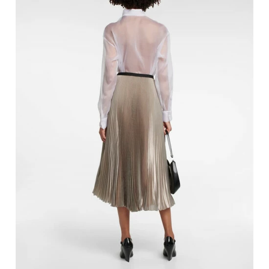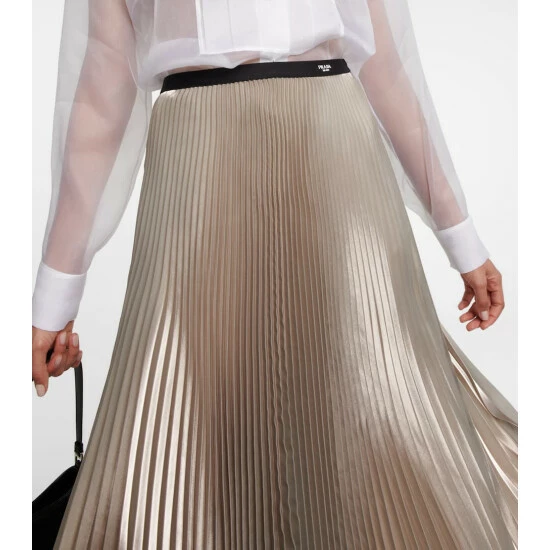 Prada’s midi skirt is made from technical voile with a metallic sheen and sunray pleats. It has a full lining and a logo jacquard waistband.
