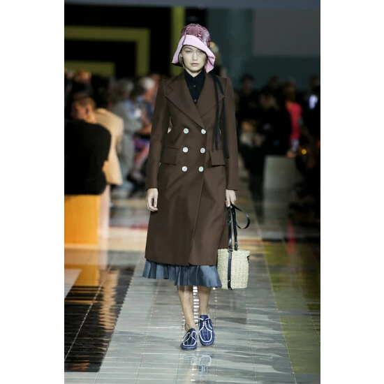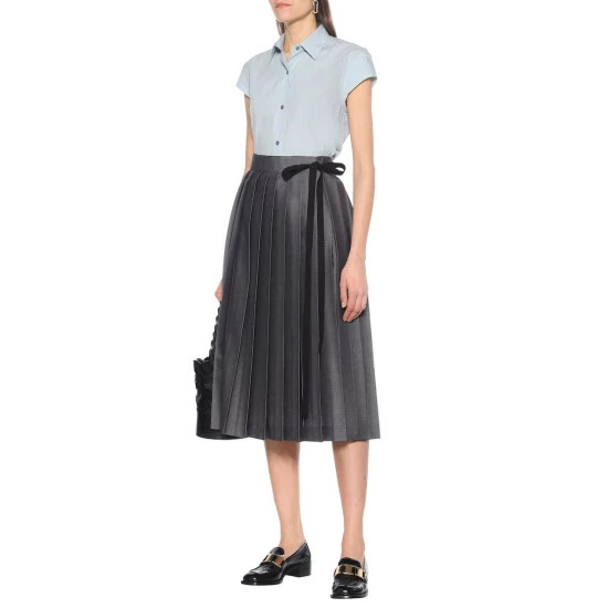 Sharply folded pleats add sophisticated edge to this gray wrap skirt from Prada. Made in Italy from a blend of mohair and wool, this SS20 style sits at the small of the waist with self ties, before falling just below the knee. Emulate runway styling by wearing yours with dark neutrals.