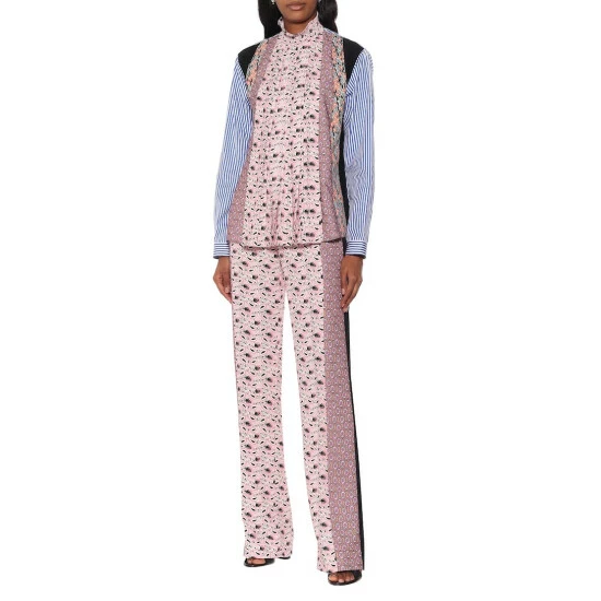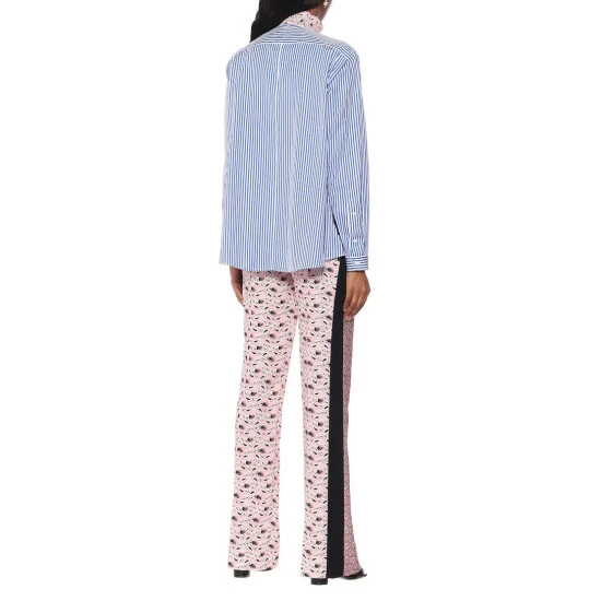 Contrasting prints and fabrics add a modern twist to this multicolored blouse from Prada. Crafted in Italy from lightweight crêpe and cotton poplin, this design is defined by a high neckline and airy silhouette. Tuck yours into the house’s coordinating pants to complete the edit.
