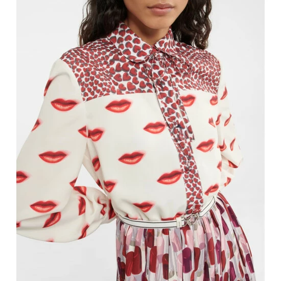 We adore this printed midi dress from Prada’s Resort 2020 collection. The Italian-made design is cut from fluid crêpe de chine with a collared, button-down bodice that gives way to a floaty pleated skirt. Lipstick, heart and lip motifs cover the piece, cinching it with tangible glamour.