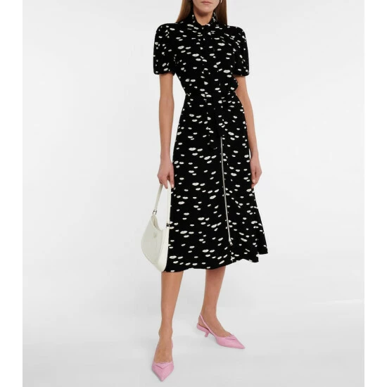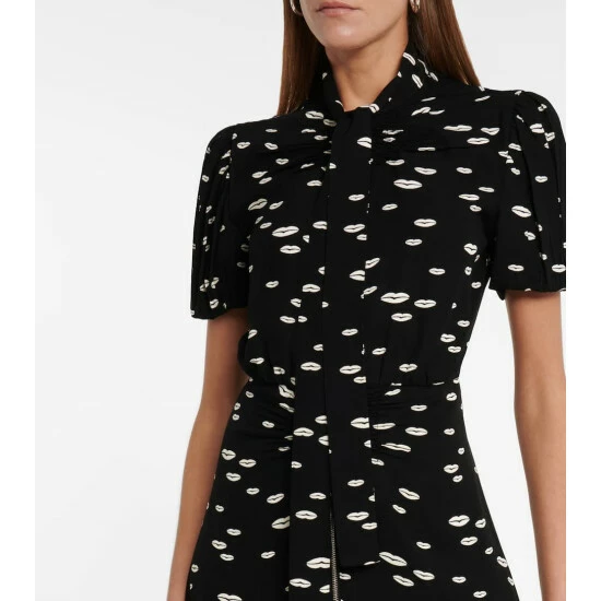 Prada’s Lips print is somewhat of an icon in the fashion world, making this black midi dress a collector’s piece for fans of the brand. Made in Italy from satin sablé that has a delightfully fluid drape, it has a loose silhouette with ruching at the bodice and waist. The ultra-modern two-way zipper at the front is another hallmark of the house.