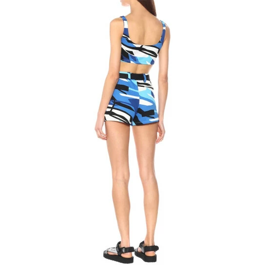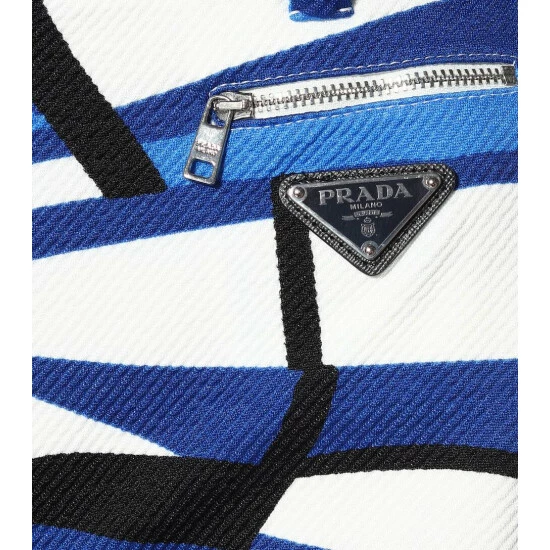 These Prada shorts work an all-over tonal blue print and a tactile puckered finish. Zipped pockets and an optional leather belt bring a utility focus to the pair.